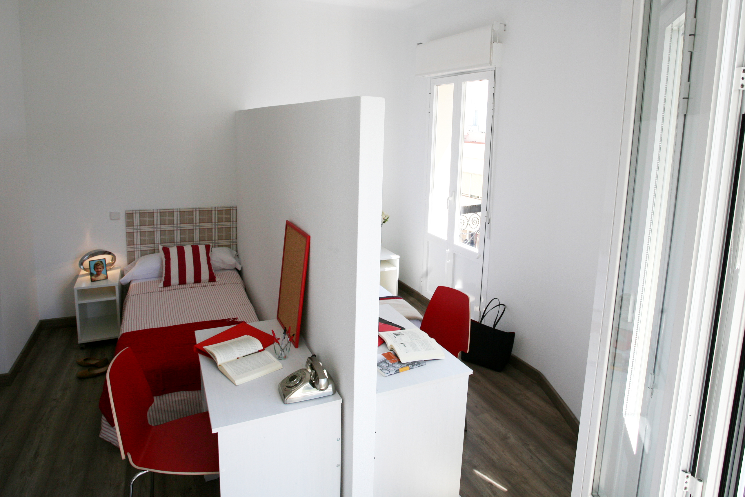 Podrás compartir habitación con otra compañera o tener una para ti sola, ademas Disponemos de una terraza de 25 m2 con zonas de sol y sombra
